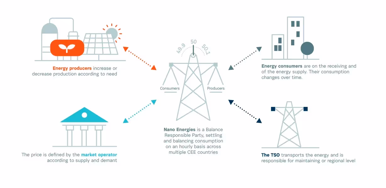 Ideally, the electricity transmission network would always be in balance, and supply and demand for electricity would always be perfectly matched, with no imbalances and no blackouts. To achieve this, market participants would have to forecast their own consumption and production with 100% accuracy. Every day, every hour. As you may have guessed, this is not how the real world works. The difference between supply and demand is rarely zero, and we need someone to take financial responsibility. Such an entity, called BRP, settles any imbalance with the connecting transmission system operator (TSO).