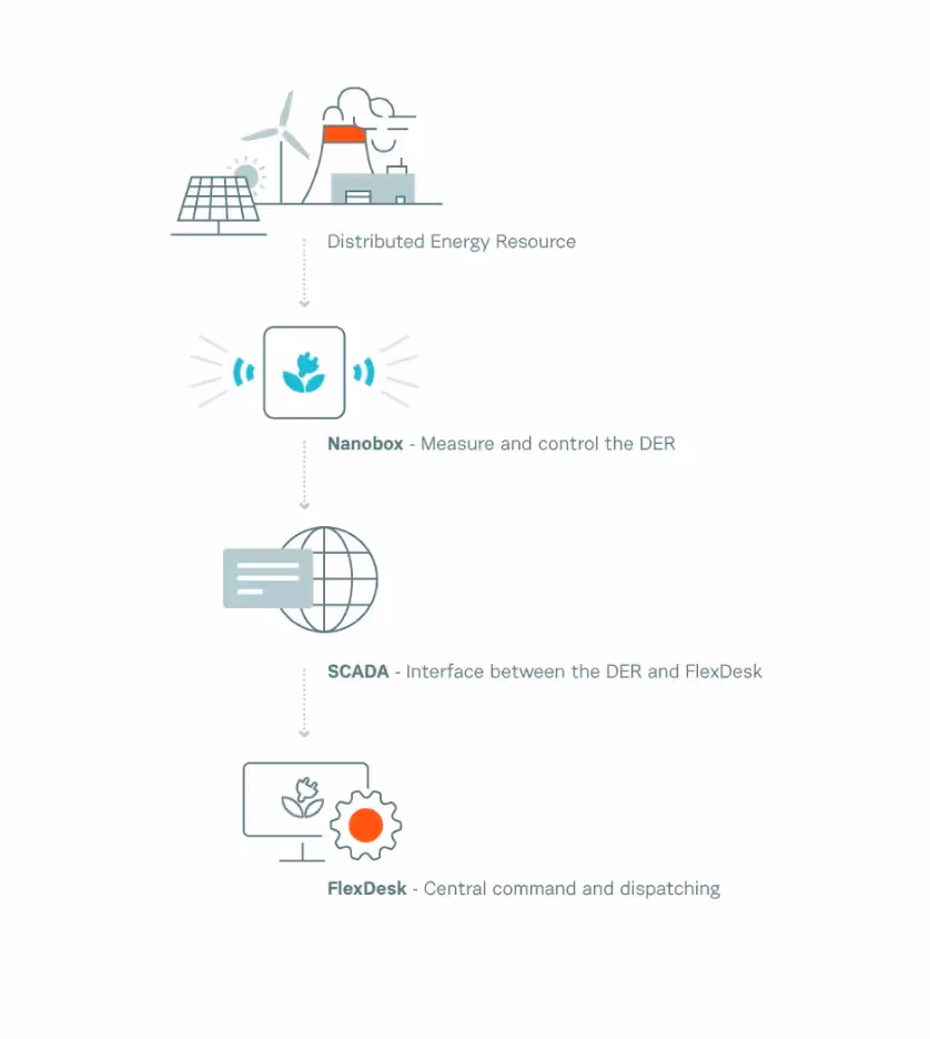 Aggregation software is critical to effectively managing and operating virtual DERs. Individually controlling thousands of individual resources would be highly impractical for utilities and grid operators. Aggregation software provides a streamlined front that operators can work with - in an effective way, while also managing the various constraints and features of each aggregated asset. This is Flexdesk.