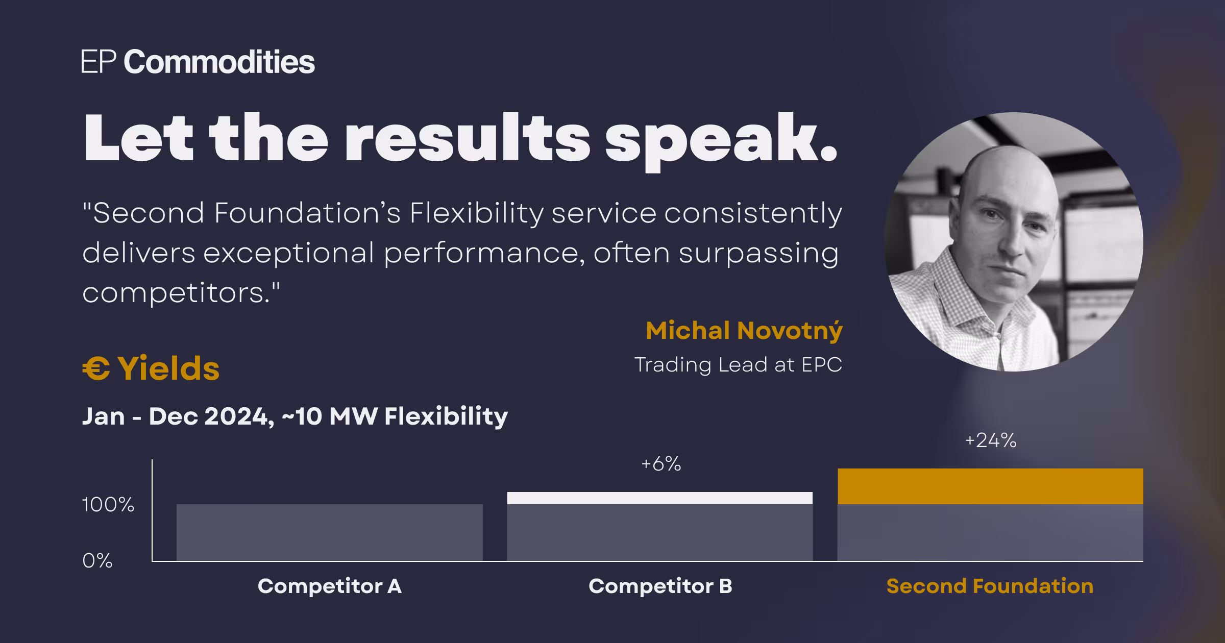 EP Commodities (EPC) recently created such a benchmark by allocating three assets in Germany, with a combined ~10 MW of flexibility, to three competing optimizers — including Second Foundation. Over the course of 2024, each provider managed one flexibility block, with results measured on a like-for-like basis.